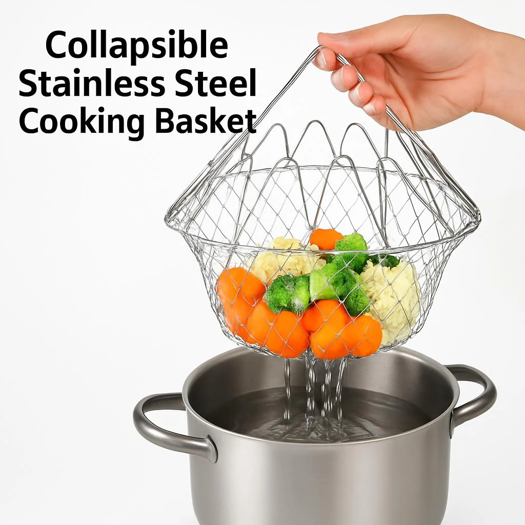 Collapsible Stainless Steel Cooking Basket - Eco-Friendly Kitchen Tool