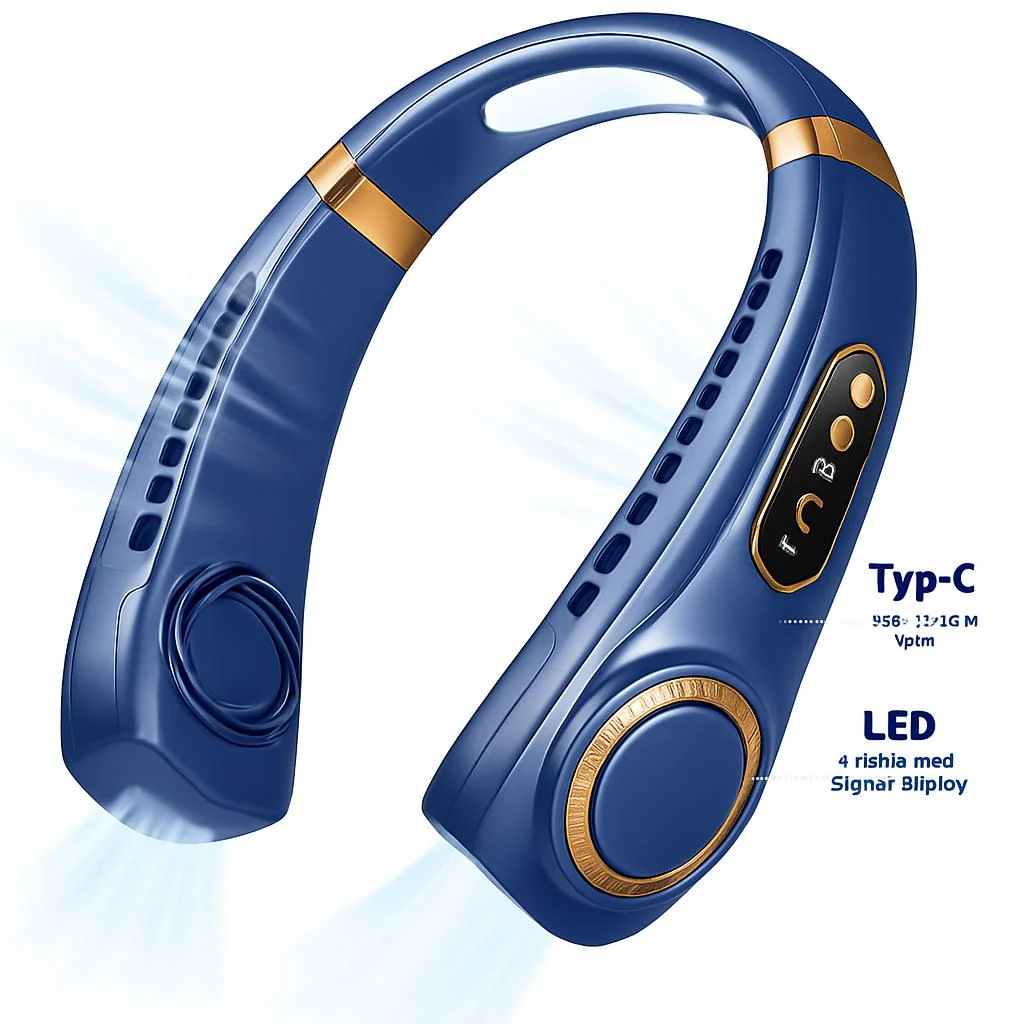 Eco-Friendly Portable Neck Fan - Hands-Free Cooling with Rechargeable Battery